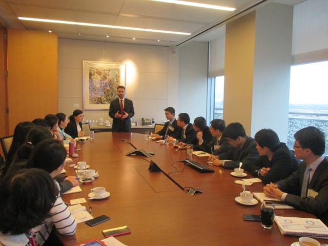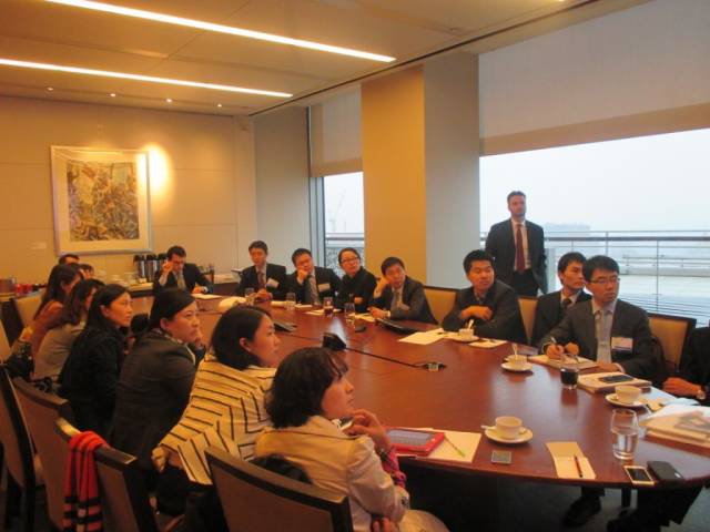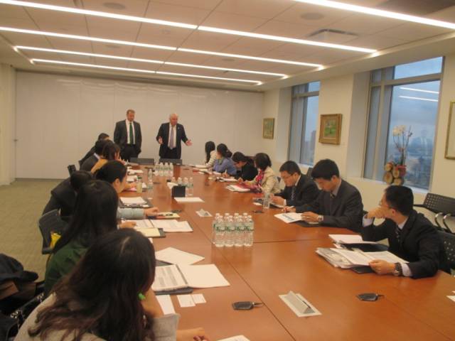 此次访问,印象深刻的是高盛的低调和奢华,说其低调是因为整个大楼没有一个自己的LOGO,以至于笔者想跟高盛LOGO拍影留念都无法实现;说其奢华,整栋大楼内部装潢异常考究,且地理位置优越,而我们所在开会的42层俯瞰纽约,海天一色,傲啸江湖。