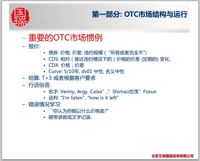 3月31日国瑞金融为国内某知名券商成功举办《OTC市场架构与交易模式》内训课。由国瑞金融独家签约金牌讲师、华尔街著名投行MD,华裔老师凯泽老师为大家讲授。来自该券商的各部门领导及业务精英,共计120多人参加了此次内训课。